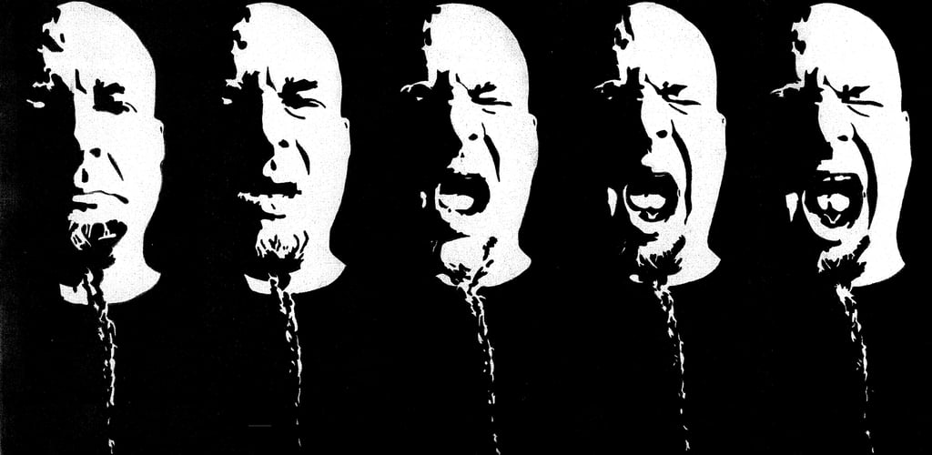 A powerful charcoal drawing that dynamically traces the progression of emotion from calm to furious. It features a sequence of faces, each escalating in intensity, with widening mouths and strained features that perfectly convey the raw power of emotion being unleashed. This high=contrast piece tells a compelling visual story of emotional release, showcasing the dramatic shifts from stillness to fury.