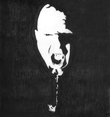 A stark charcoal drawing that unflinchingly portrays a skull emerging from deep shadows Rendered in my signature high-contrast, hard line style, this piece serves as a potent visual reminder of the tragic reality that for some, the relentless battle against mental illness ultimately culminates in death. It is a sober acknowledgement of the ultimate cost of unseen struggles.